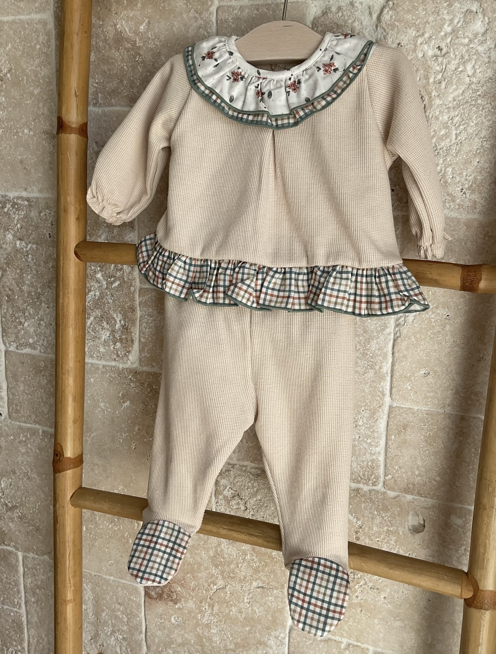 Conjunto bebe beige con detalles.