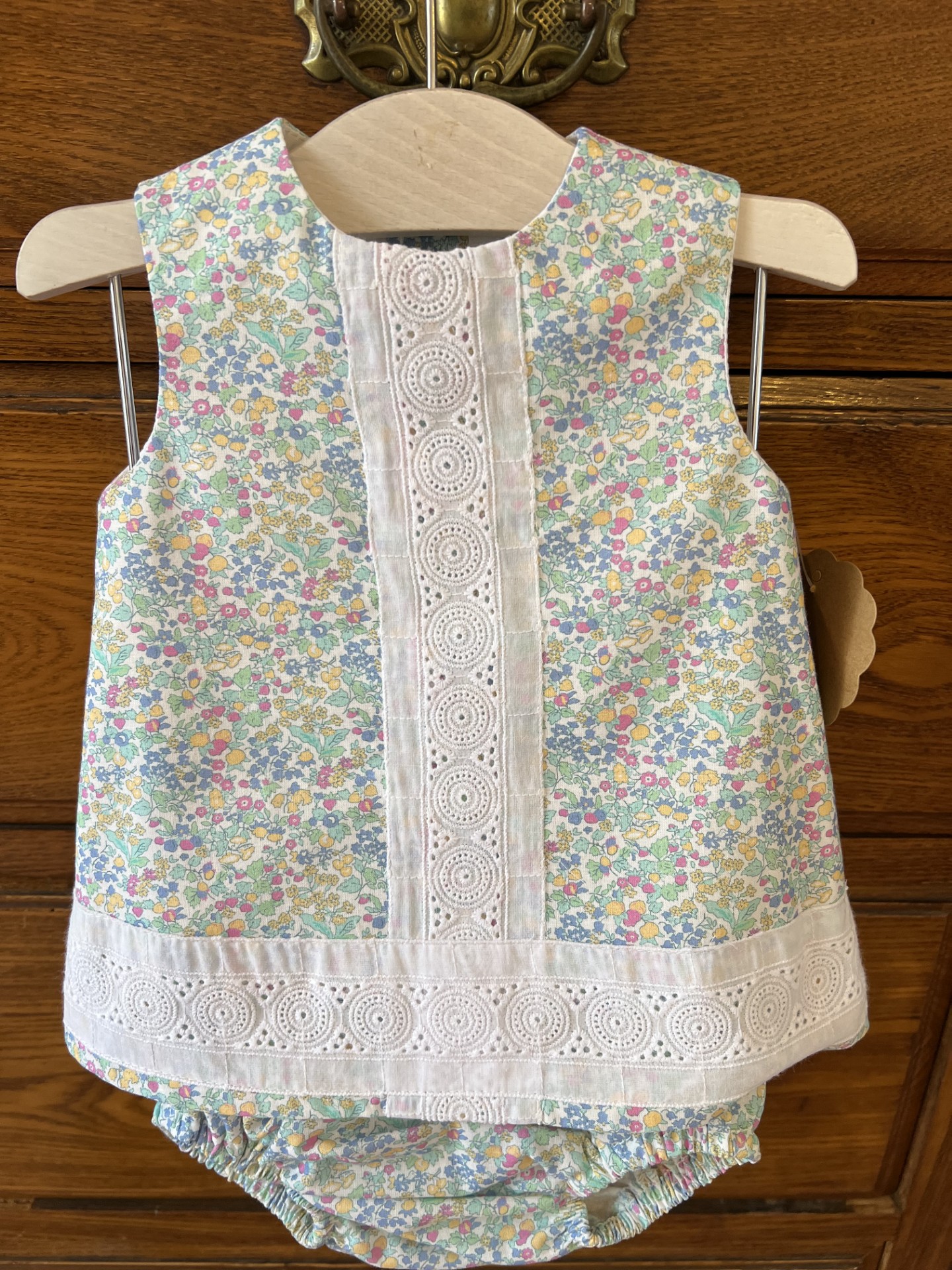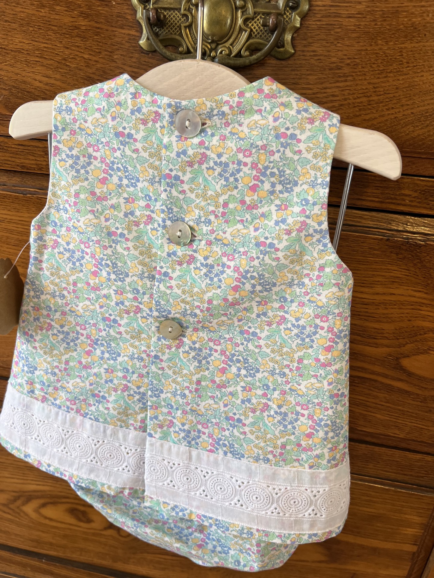 Jesusito cruzado. Braguita incluida. Bambula estampada. Cremallera espalda. 100% algodón.