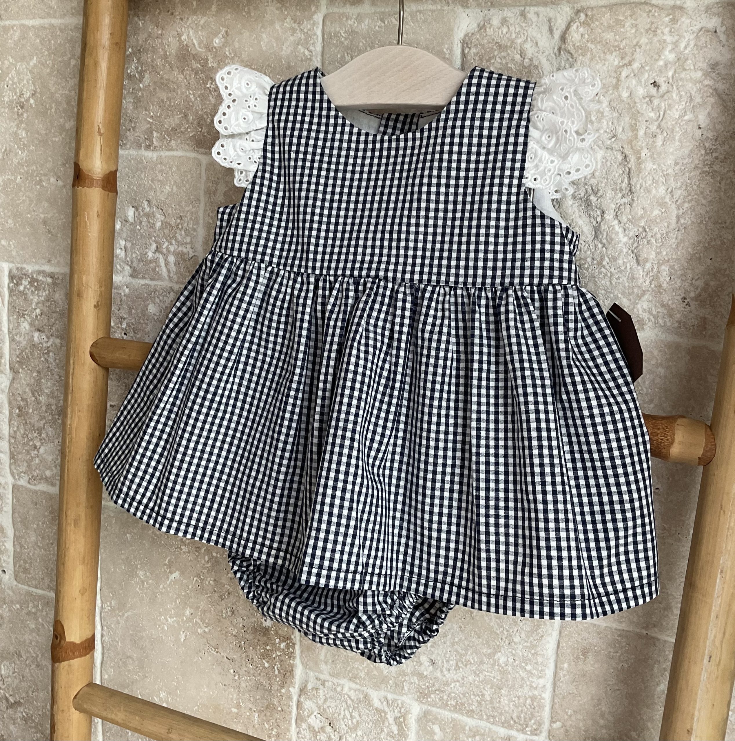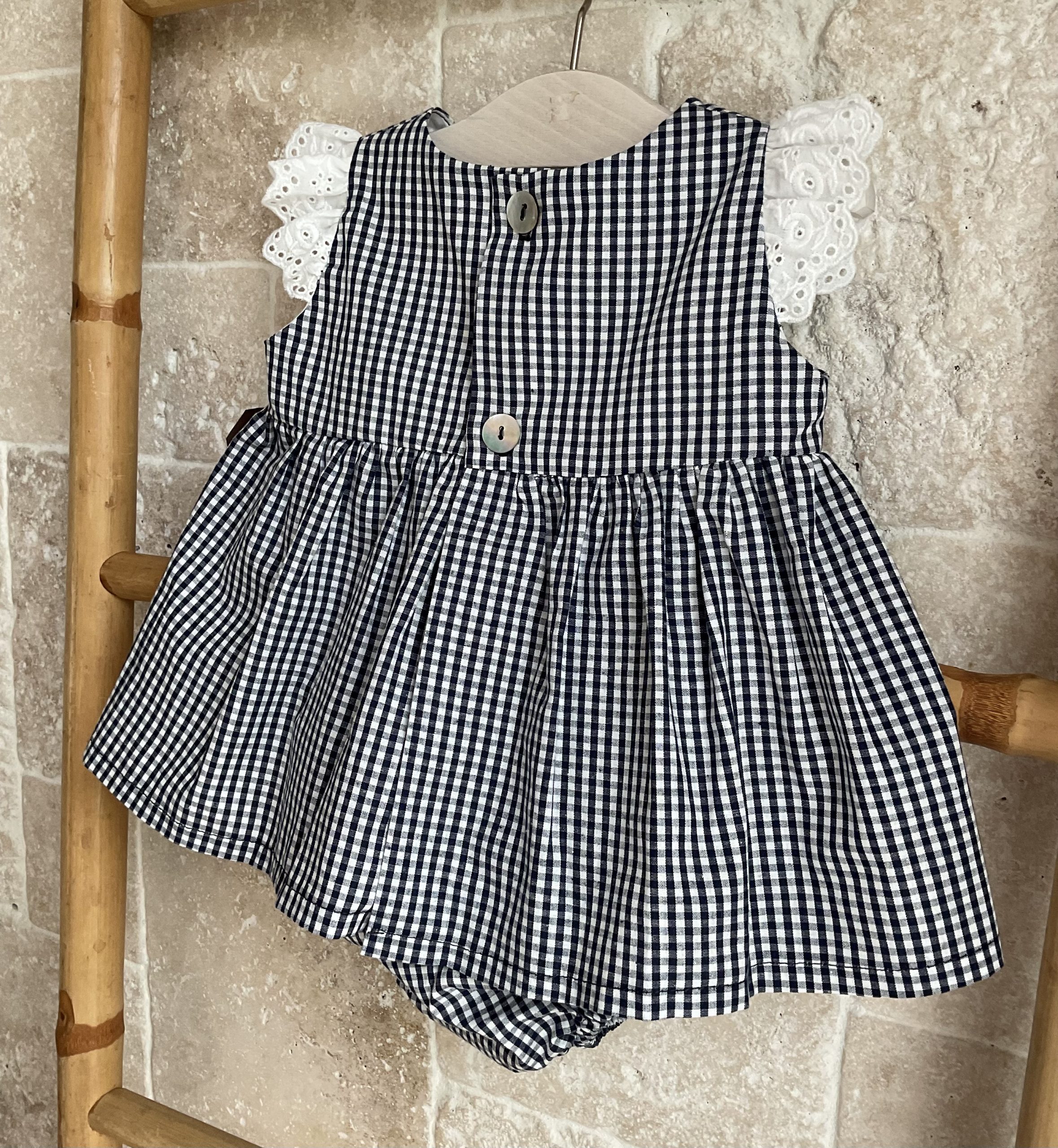 Jesusito vichy marino con tira bordada.