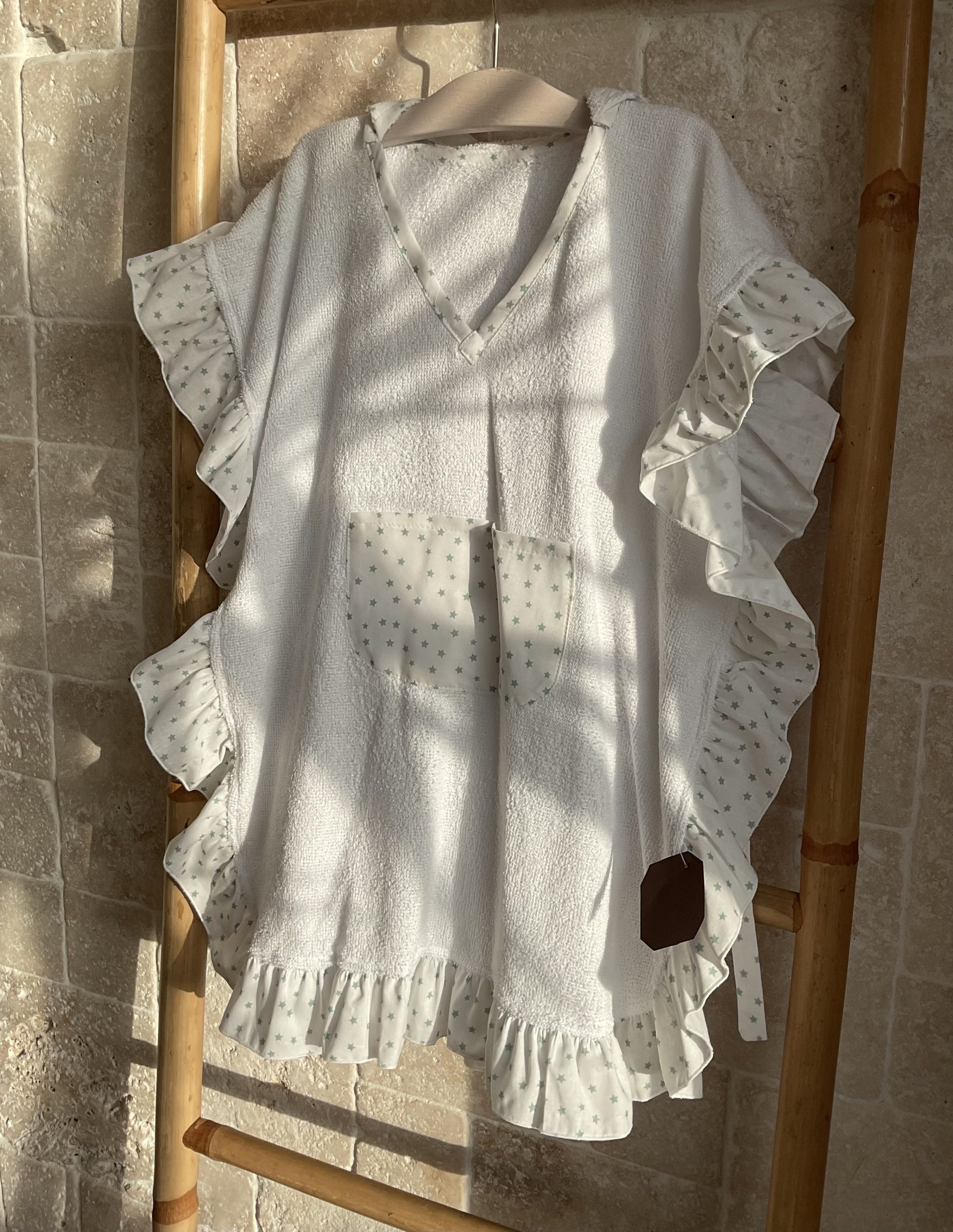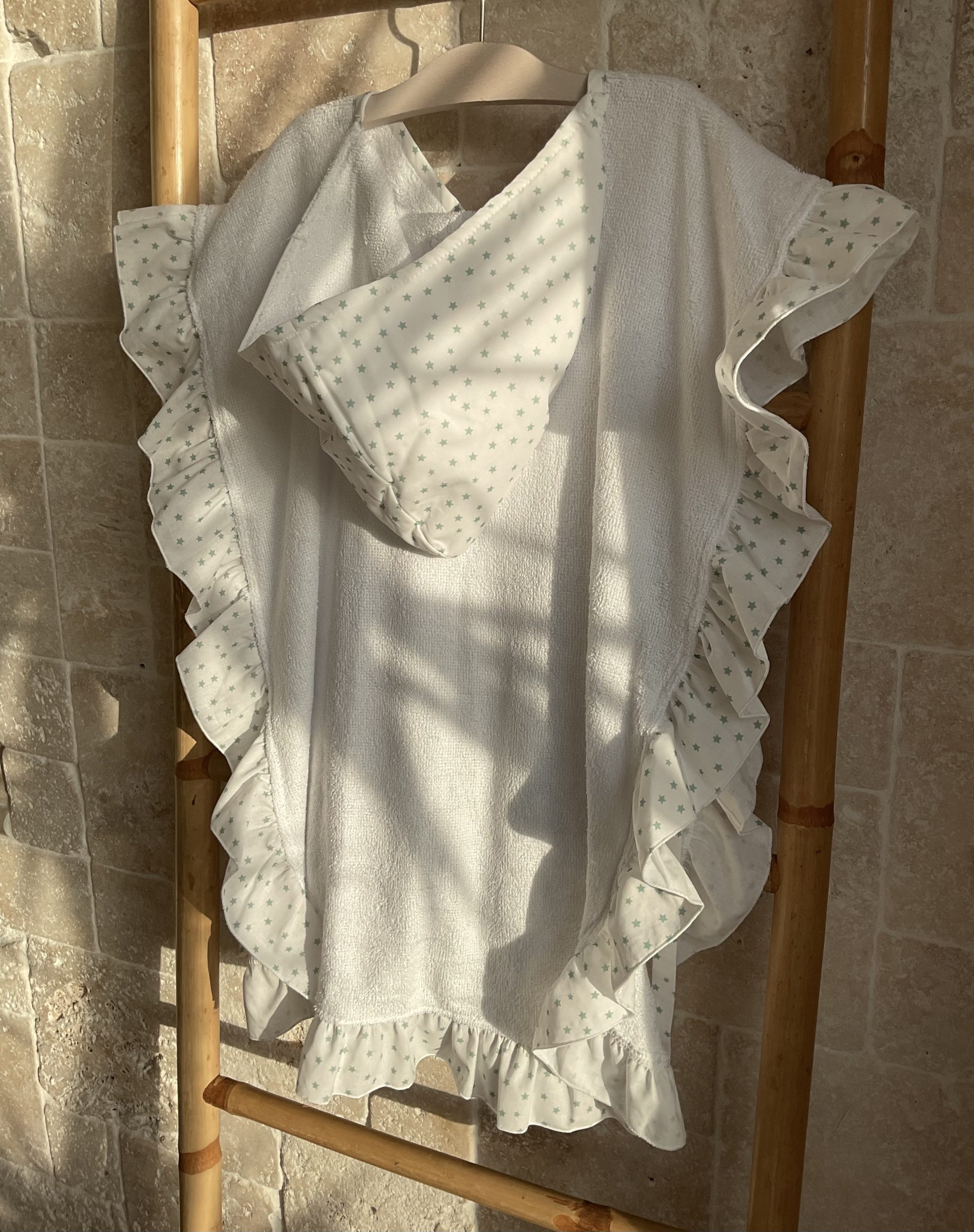 Vestido cruzado con lazada. Bambula estampada. 100% algodón.