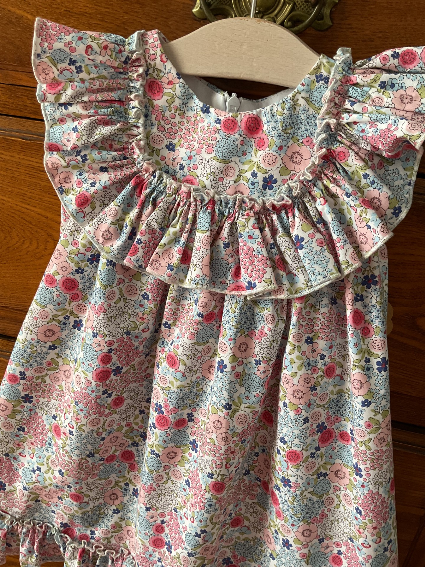 Vestido cruzado con lazada. Bambula estampada. 100% algodón.