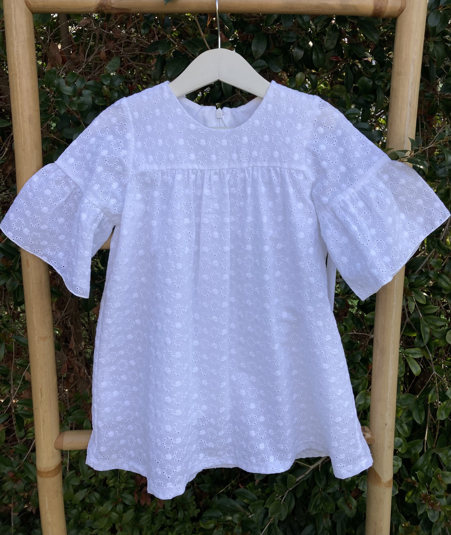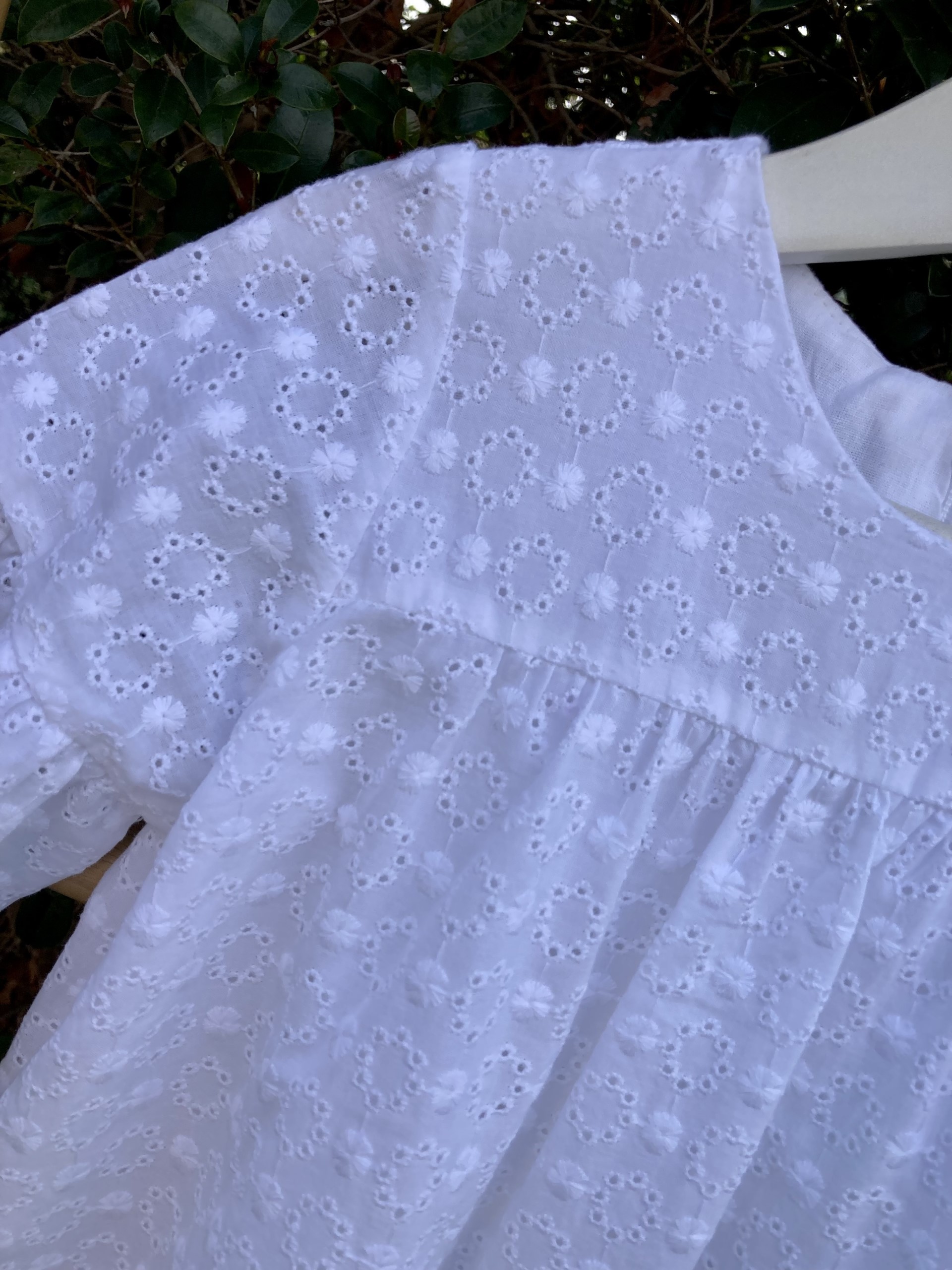 Kurta manga francesa. Blanco con relieve en cuadros. 100% algodón.